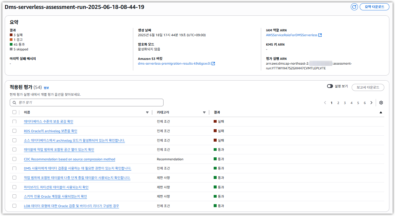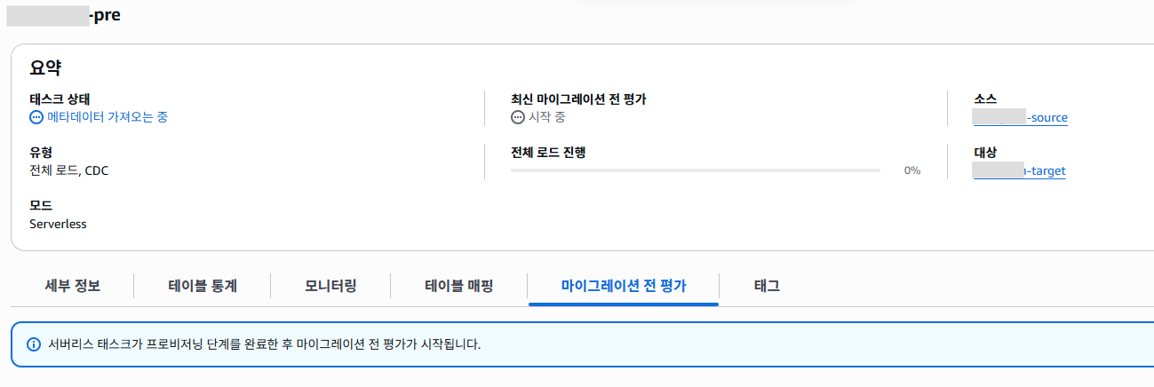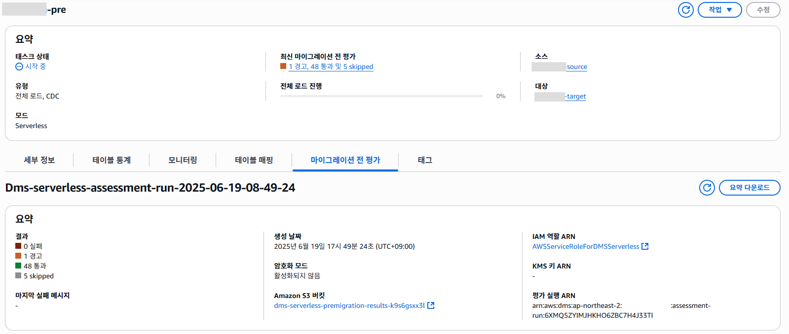 AWS DMS Serverless로 복제 및 CDC를 진행할 태스크 생성하여, 해당 태스크 실행 전에 마이그레이션 평가를 진행하려고 합니다.
