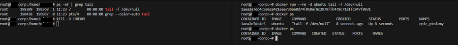 ps -ef | grep tail #호스트에서 tail 프로세스 검색