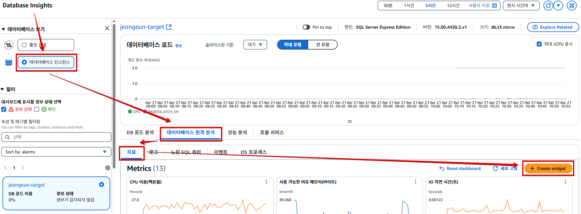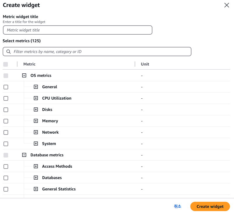 위에서 언급했던 것과 같이 데이터베이스 원격 분석 - 지표에서 사용자 정의 위젯을 생성할 수 있습니다.