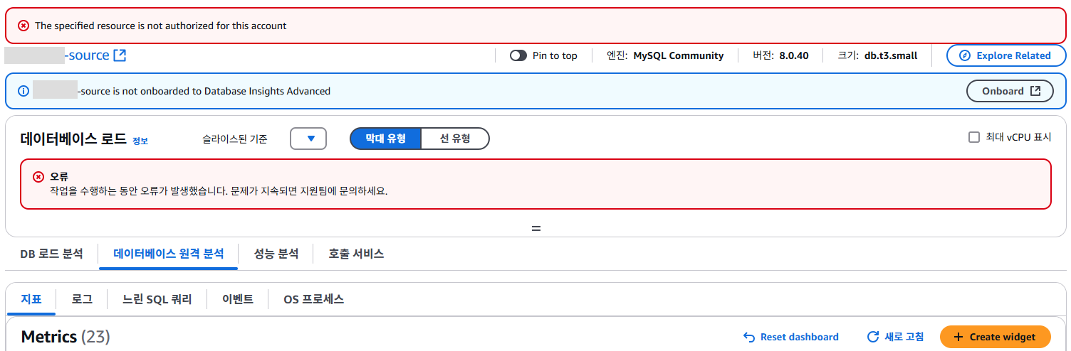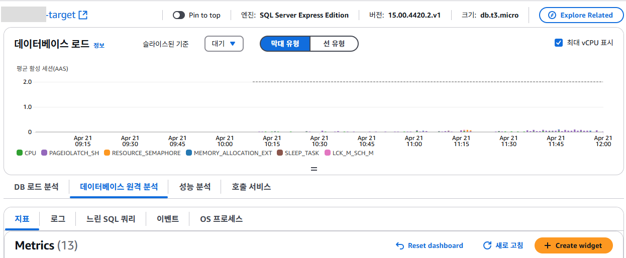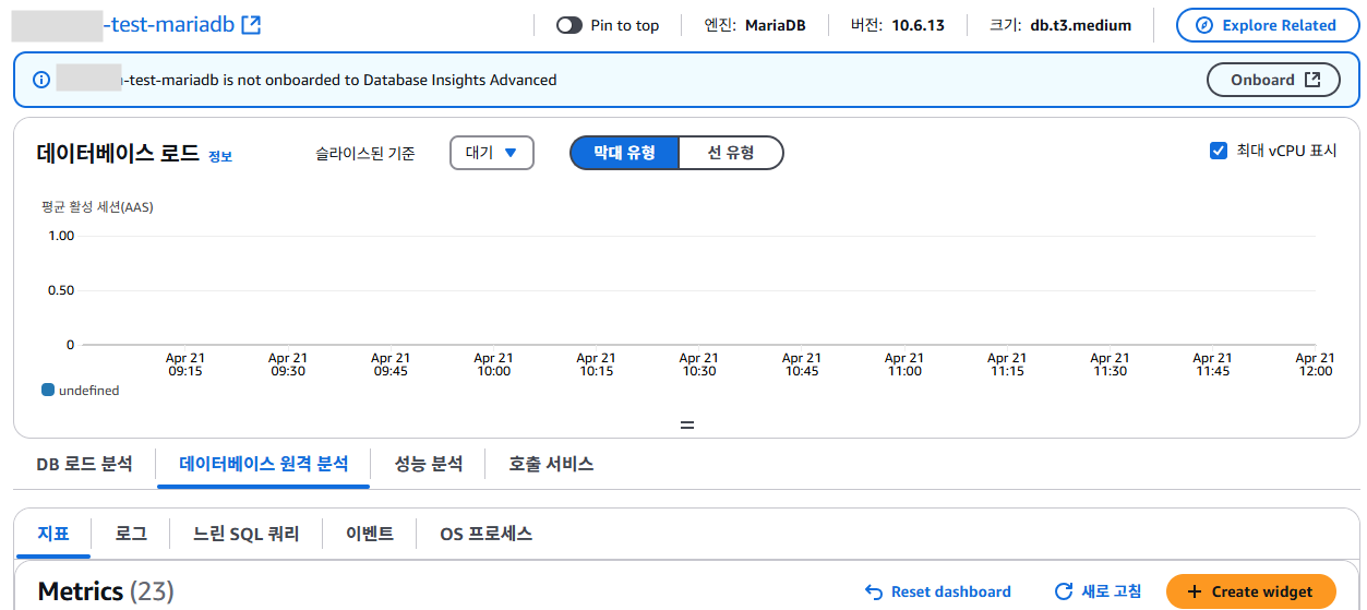 Database Insights 고급이 켜져있어야 볼 수 있습니다.