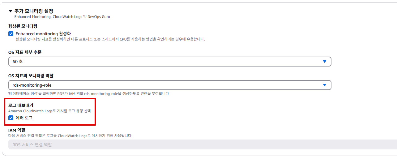 + 로그 내보내기는 인스턴스 - 수정에서 설정할 수 있습니다.