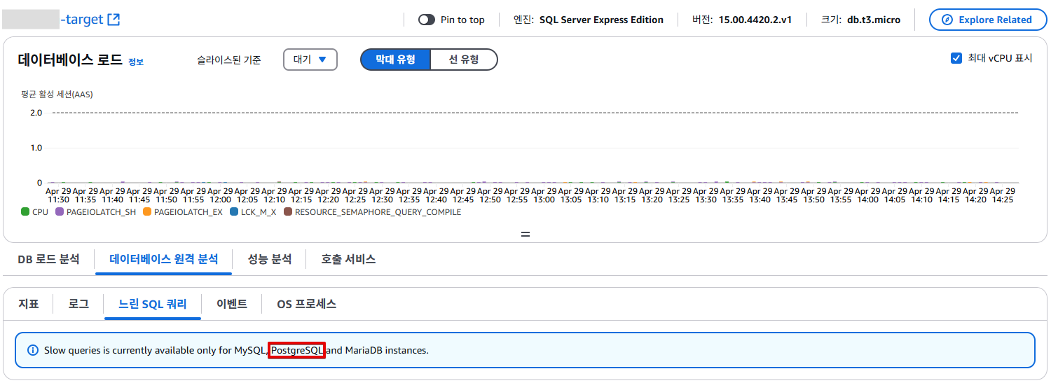 로그 내보내기에 관한 문서를 확인하였을 때는, Aurora MySQL, Maria DB, MySQL 에서만 느린 쿼리 로그 내보내기가 가능한 것으로 보이나, AWS에 의하면 PostgreSQL에서도 가능하다고 합니다.