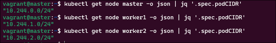 kubectl get node master -o json | jq '.spec.podCIDR'