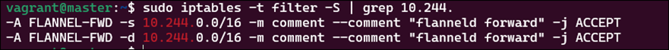 -A FLANNEL-POSTRTG -s 10.244.0.0/24 -d 10.244.0.0/16 -j RETURN
