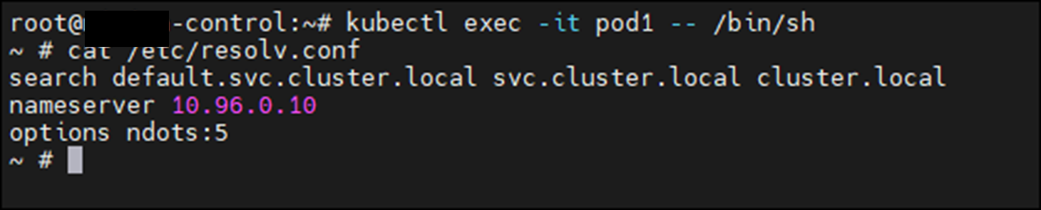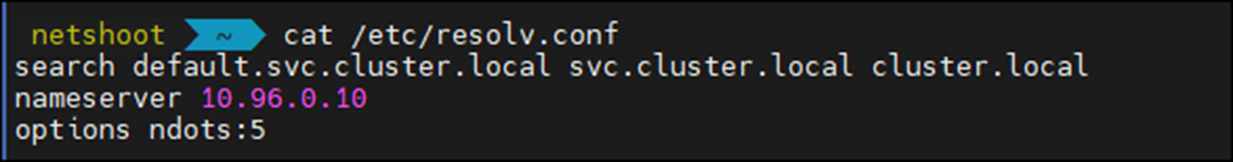 참고: netshoot에 설정된 resolve의 nameserver IP는 CoreDNS의 Service IP입니다.