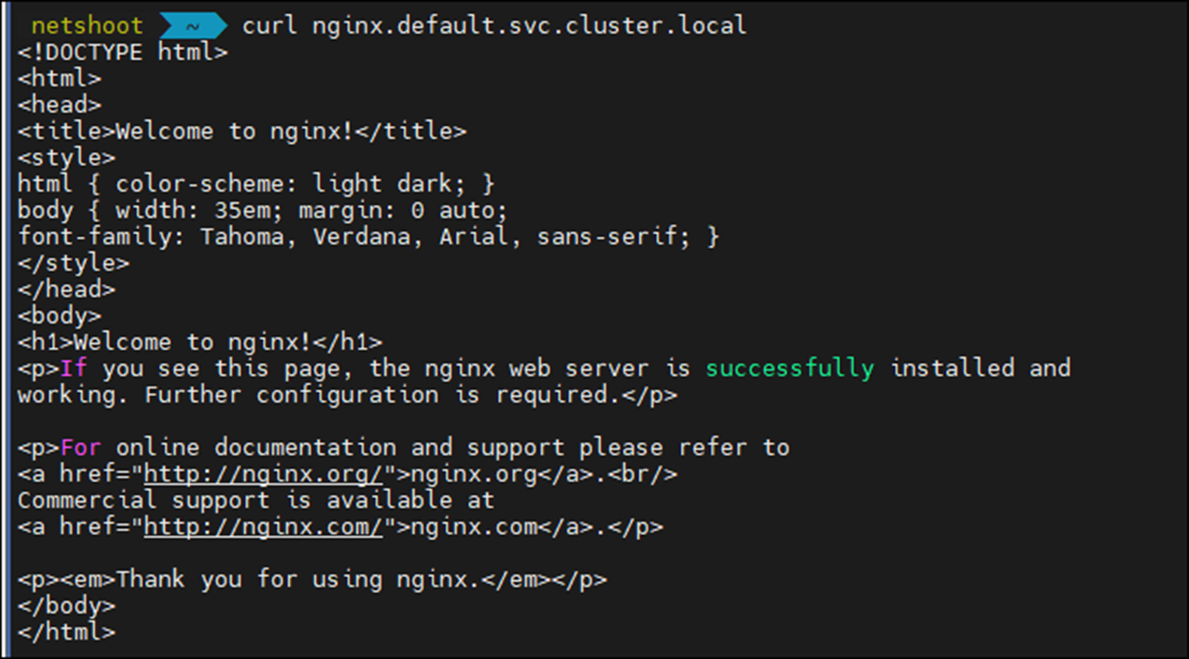 curl nginx.default.svc.cluster.local
